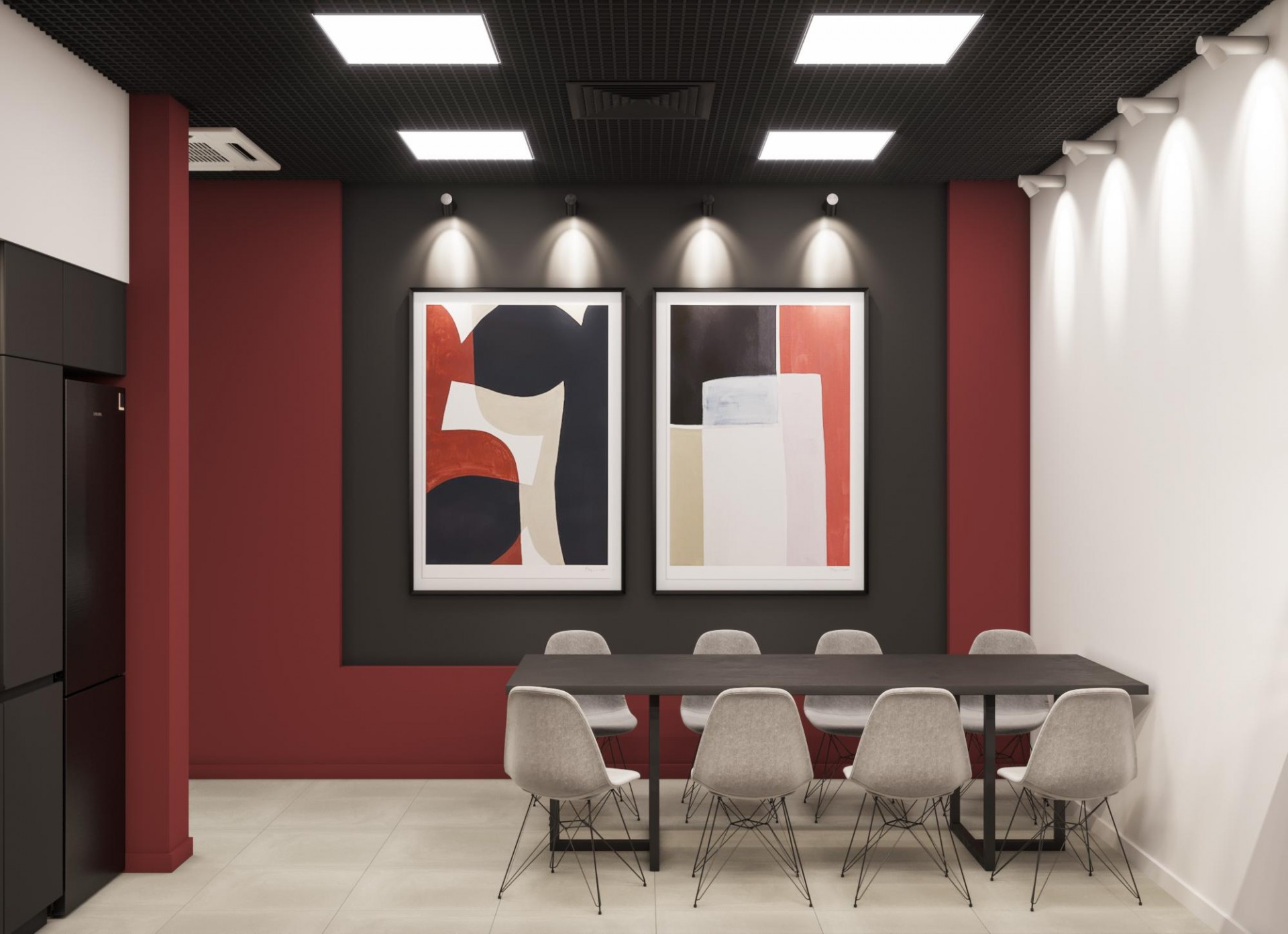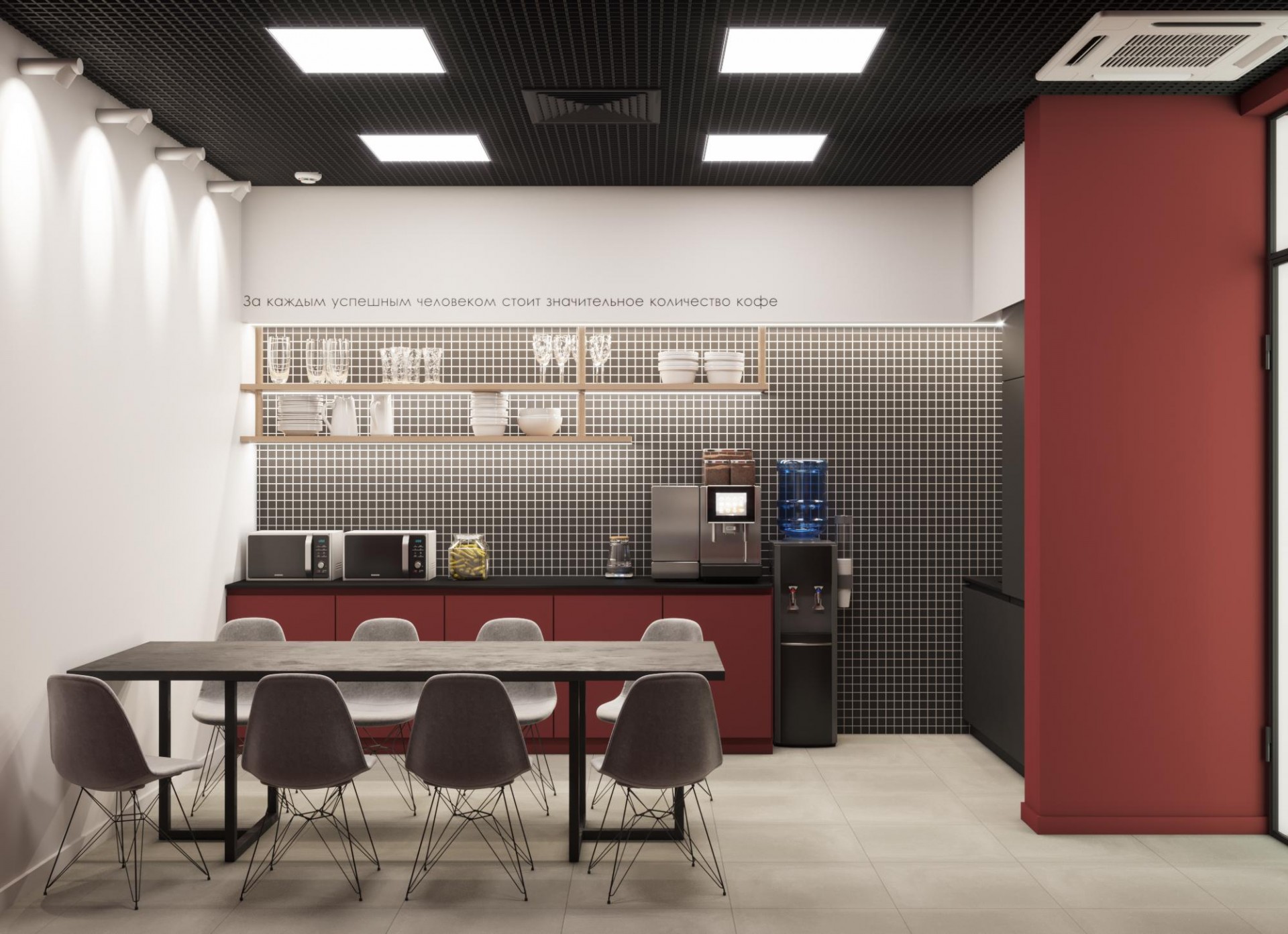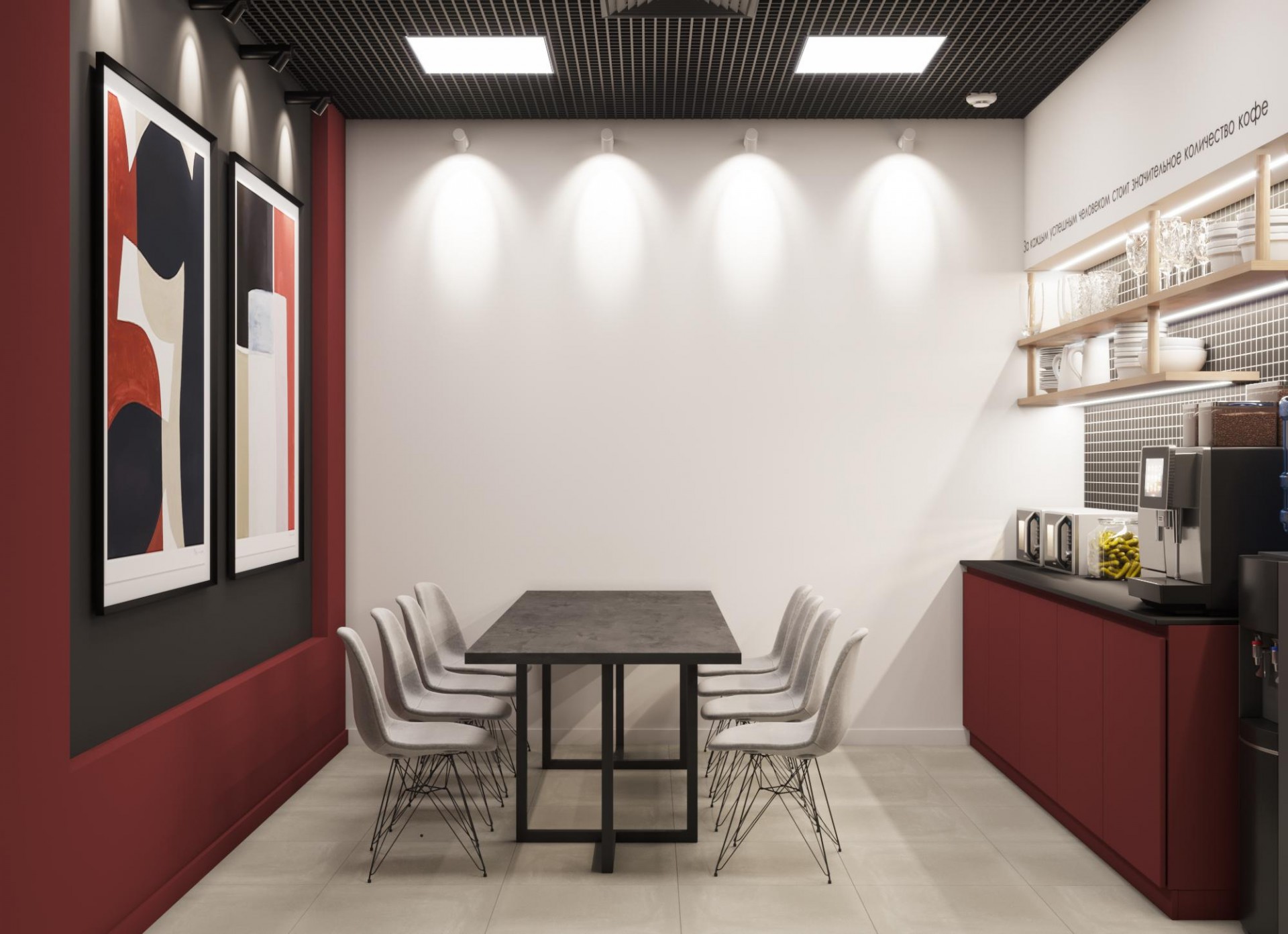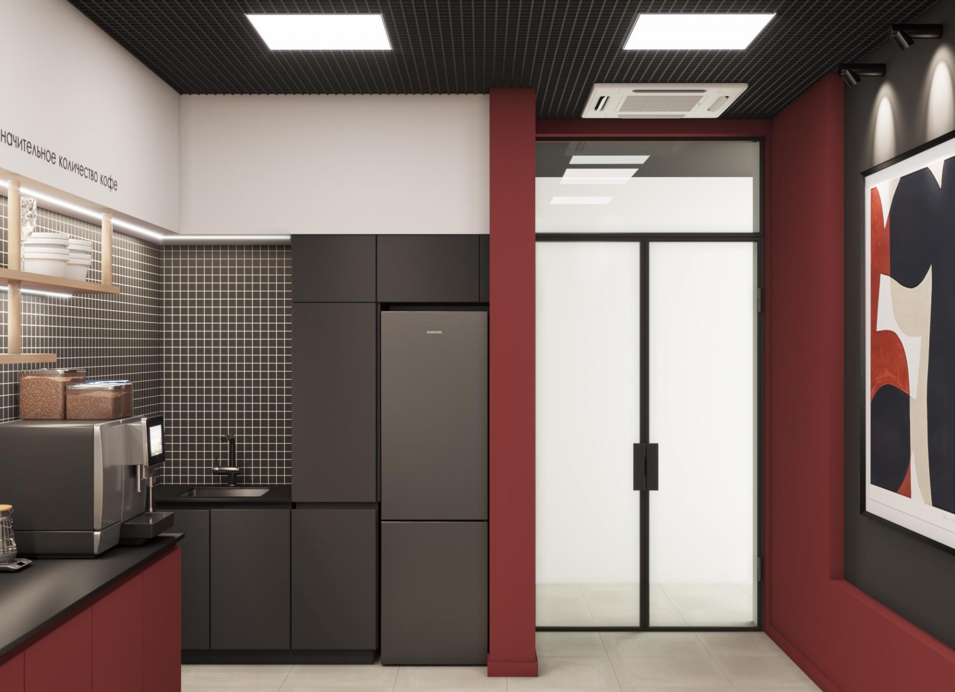 Мы также разработали функциональную кухню, которая стала важным элементом инфраструктуры административного корпуса. Кухня оборудована всей необходимой техникой и мебелью для удобства персонала. Пространство организовано таким образом, чтобы сотрудники могли комфортно проводить время на перерывах, что способствует улучшению корпоративной культуры и повышению удовлетворенности сотрудников.