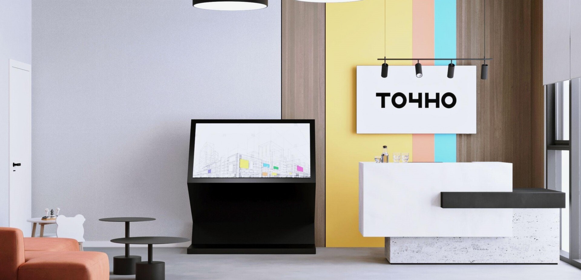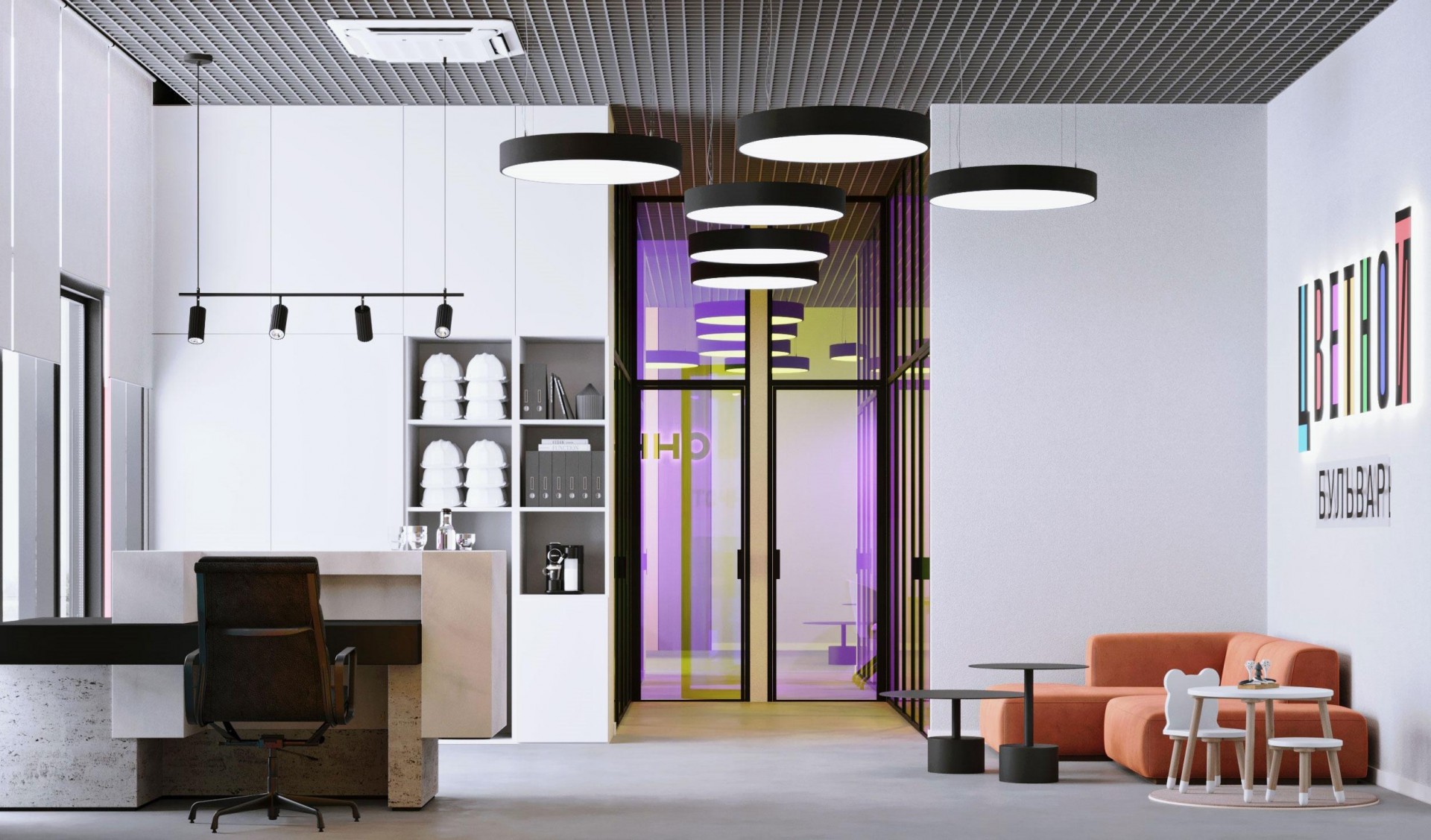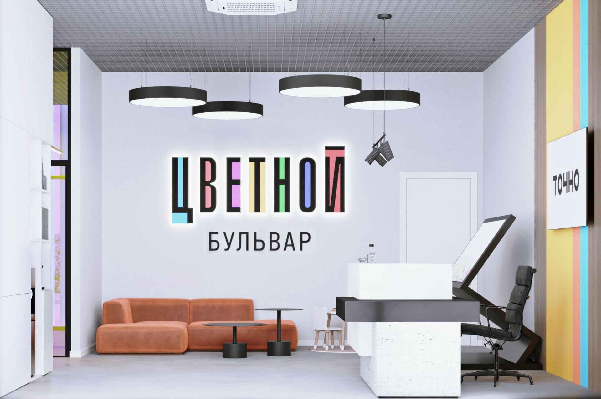 Концепция 7 цветов в офисе продаж для ЖК «Цветной бульвар»
