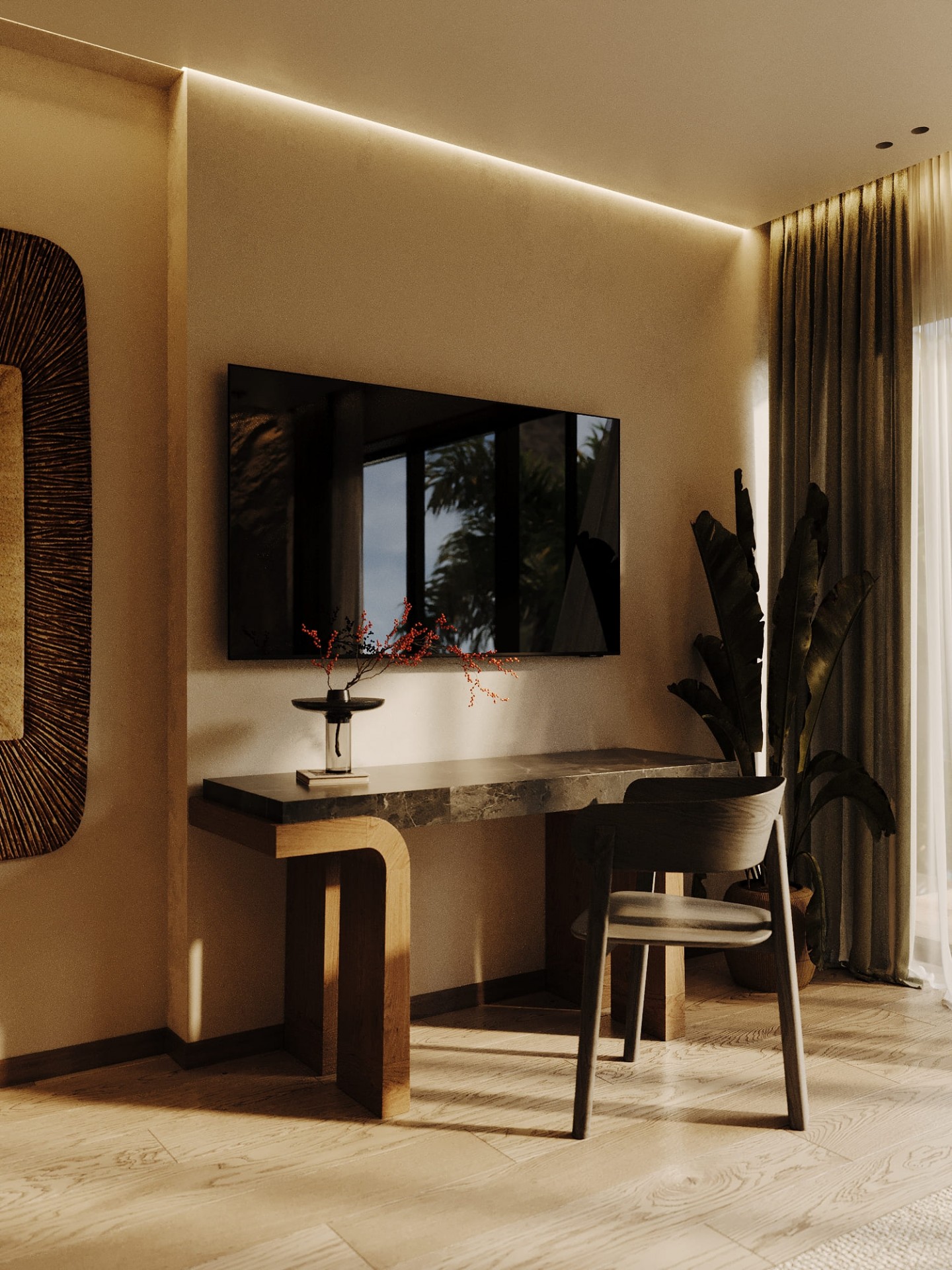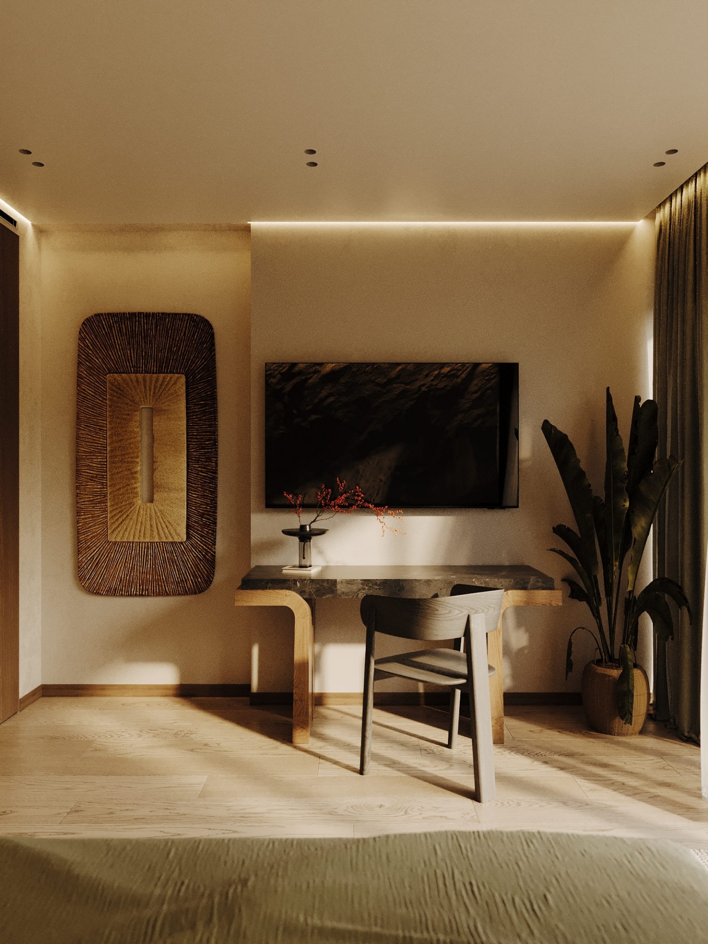Для интерьера отельного комплекса на побережье была выбрана концепция сдержанной роскоши, которая идеально вписывается в природный ландшафт и подчеркивает единение с окружающей средой. Основу дизайна составляют натуральные материалы, такие как дерево и текстиль, создающие атмосферу уюта и тепла, которая гармонично сочетается с морским воздухом и зеленой природой.