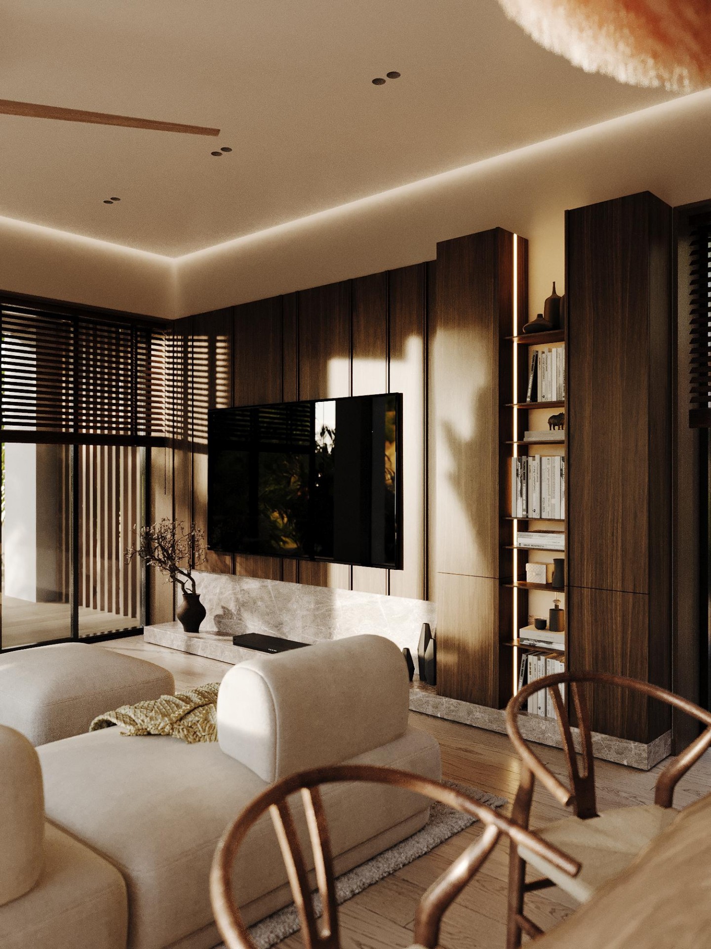 В интерьере использованы сдержанные, но элегантные линии, которые создают атмосферу уюта и расслабленности.