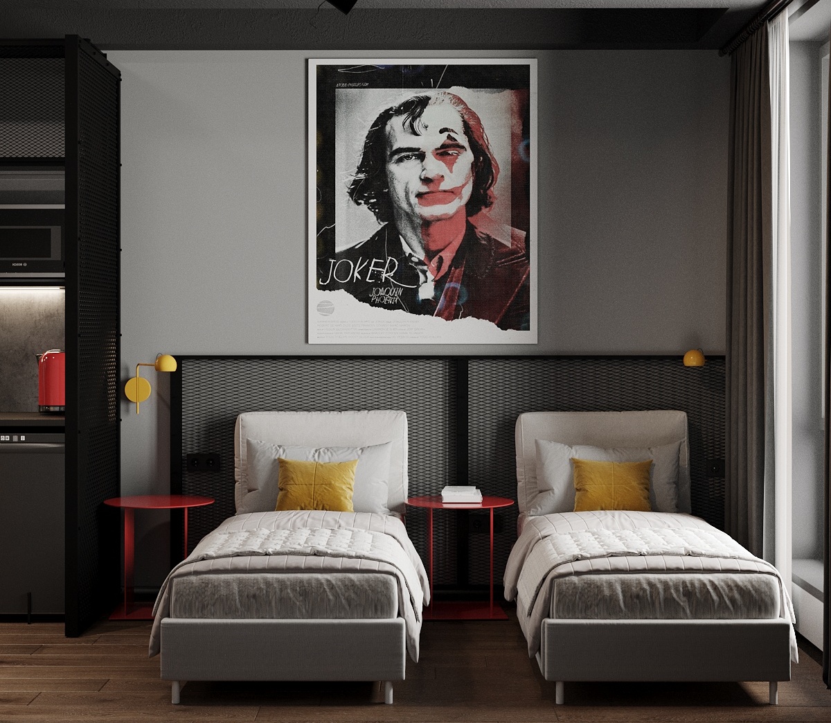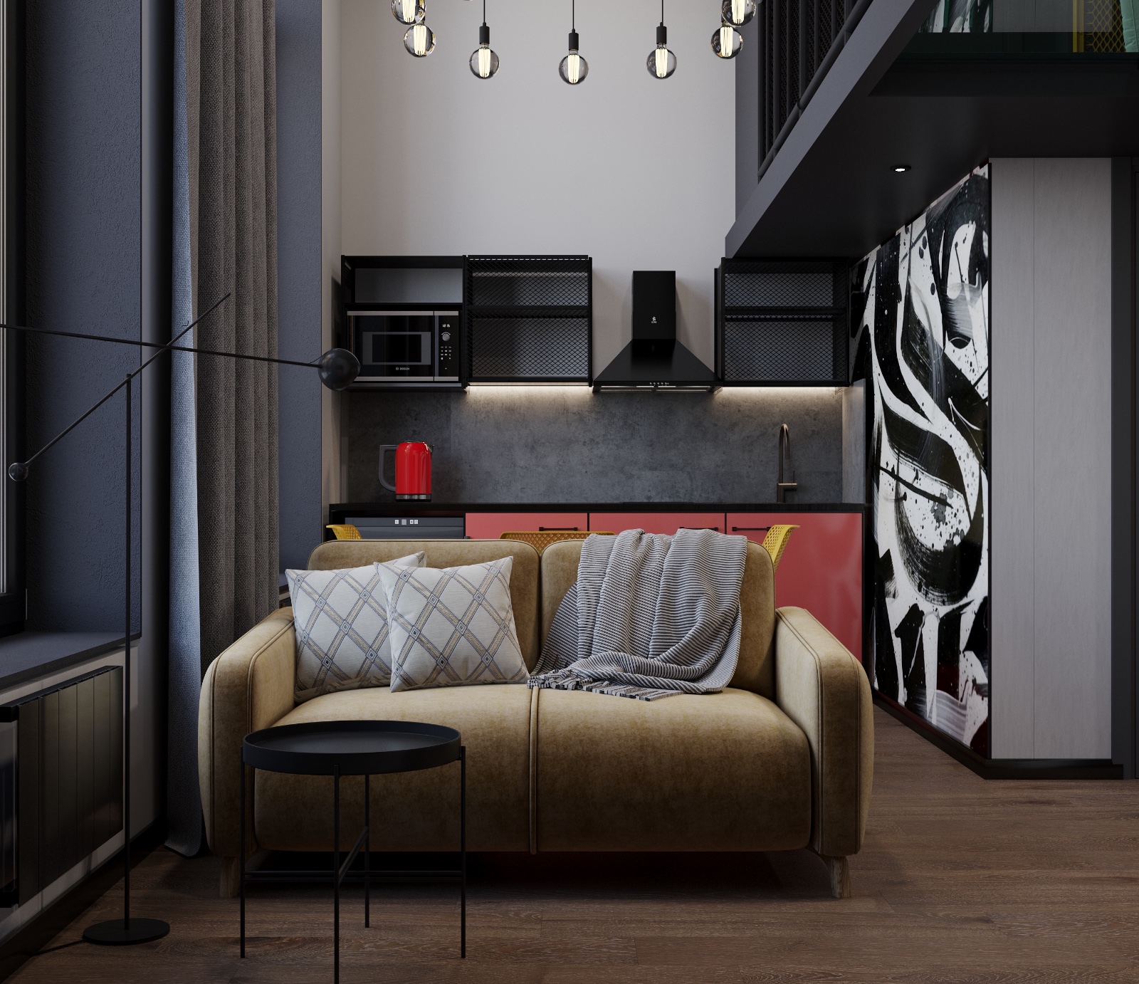 Брутальный лофт с яркими акцентами в апартаментном комплексе Санкт-Петербурга