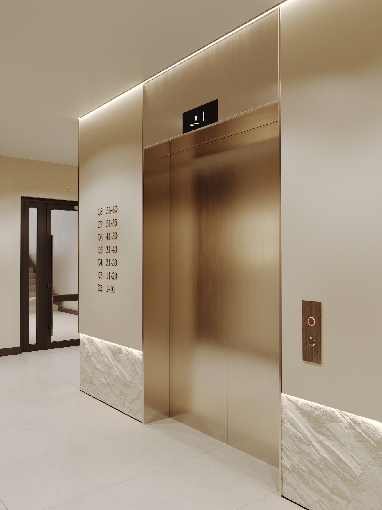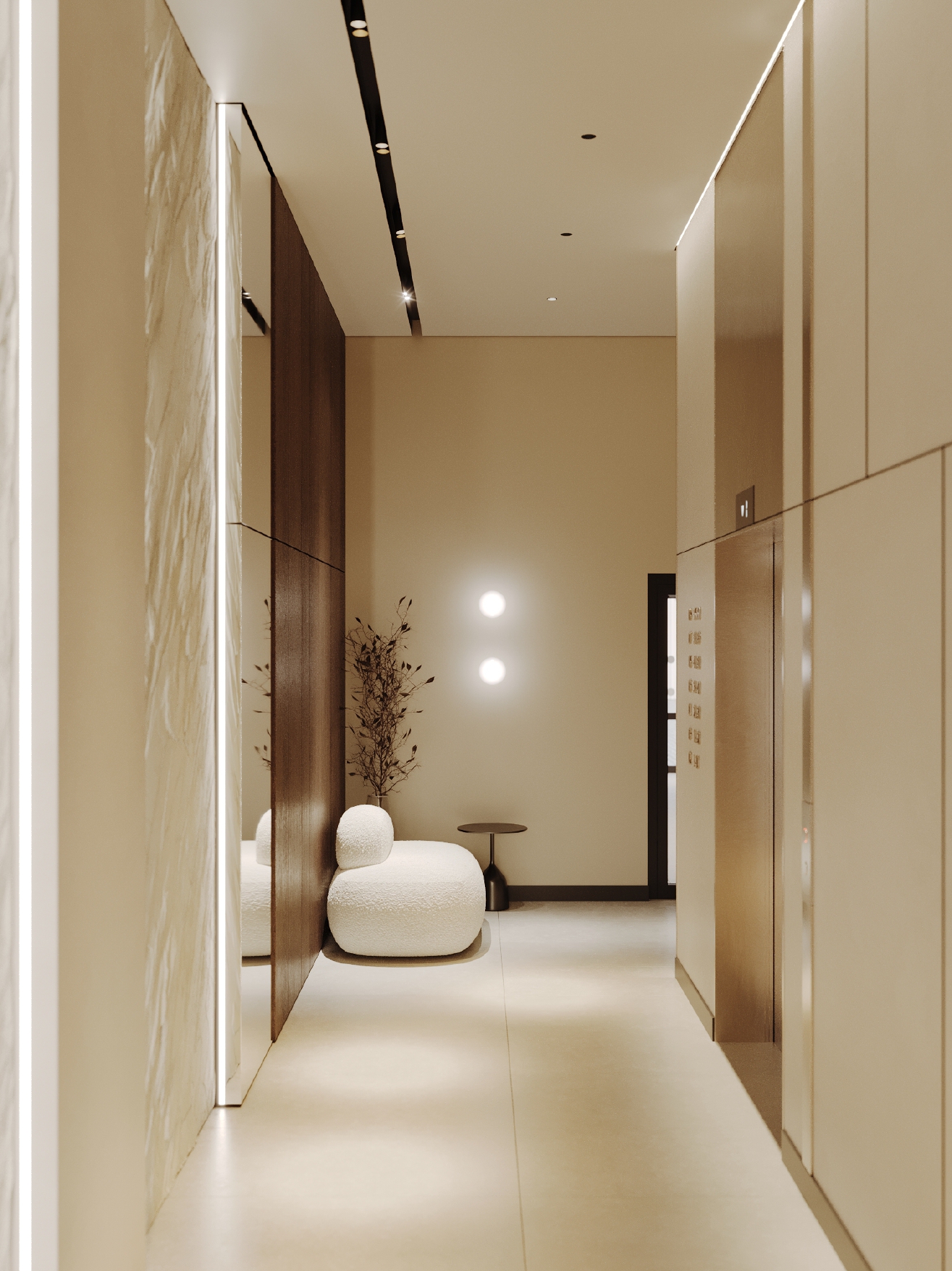 Особое внимание уделено деталям: стены украшены декоративными панелями с рельефом, напоминающим скальные образования — они придают интерьеру глубину и динамику.